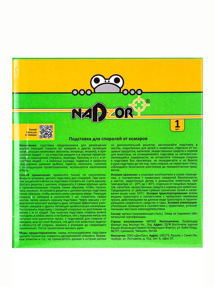 Подставка для спиралей от комаров - отличный вариант как разместить уничтожитель, чтобы не обжечь руки, не прожечь вещи или чтобы пепел от спирали не разлетелся при порыве ветра. В комплект входит крышка, которая делает тлеющую спираль безопасной со всех сторон.
