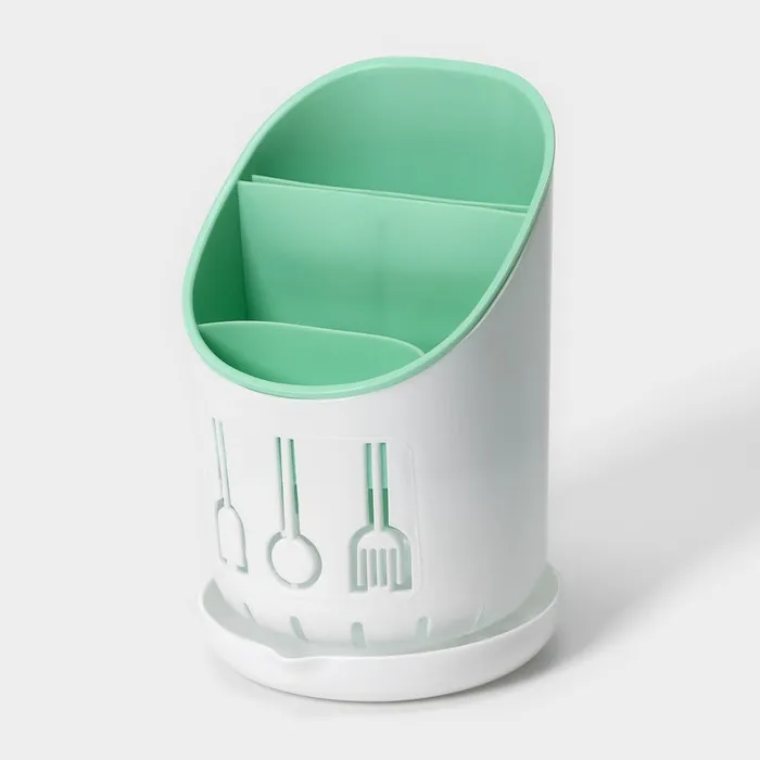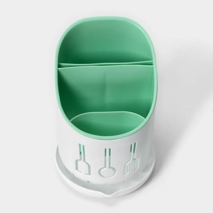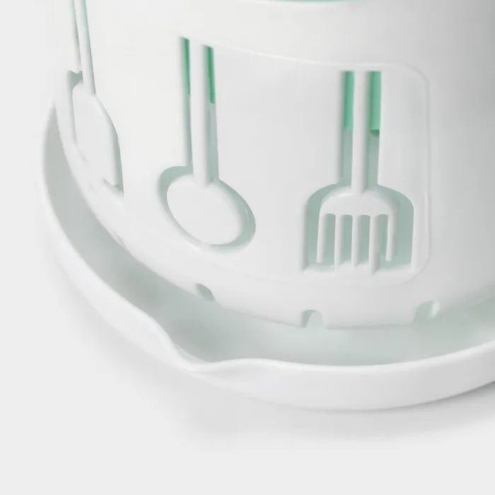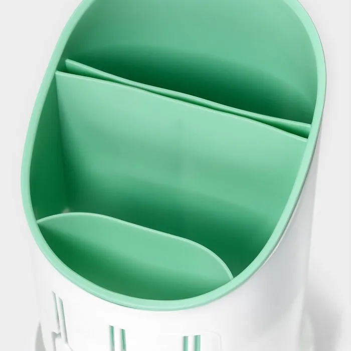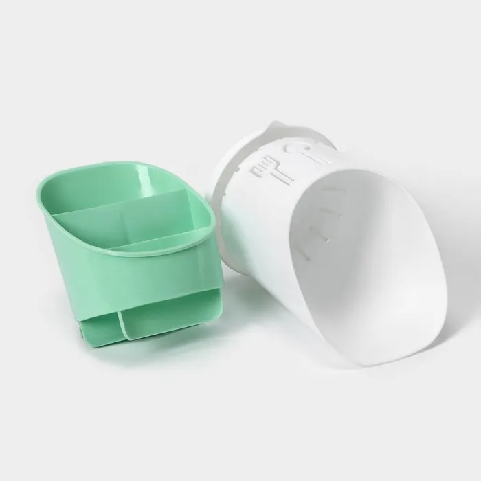 Подставка для столовых приборов Доляна, пластик, 3 отделения, 12×12×9 см, зелёная, белая — Характеристики