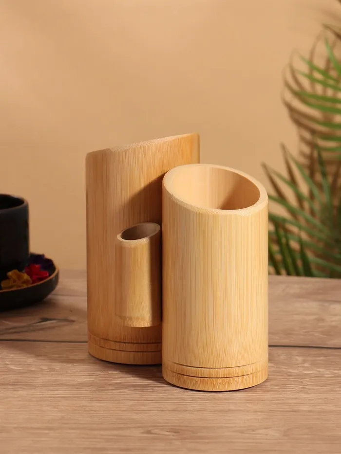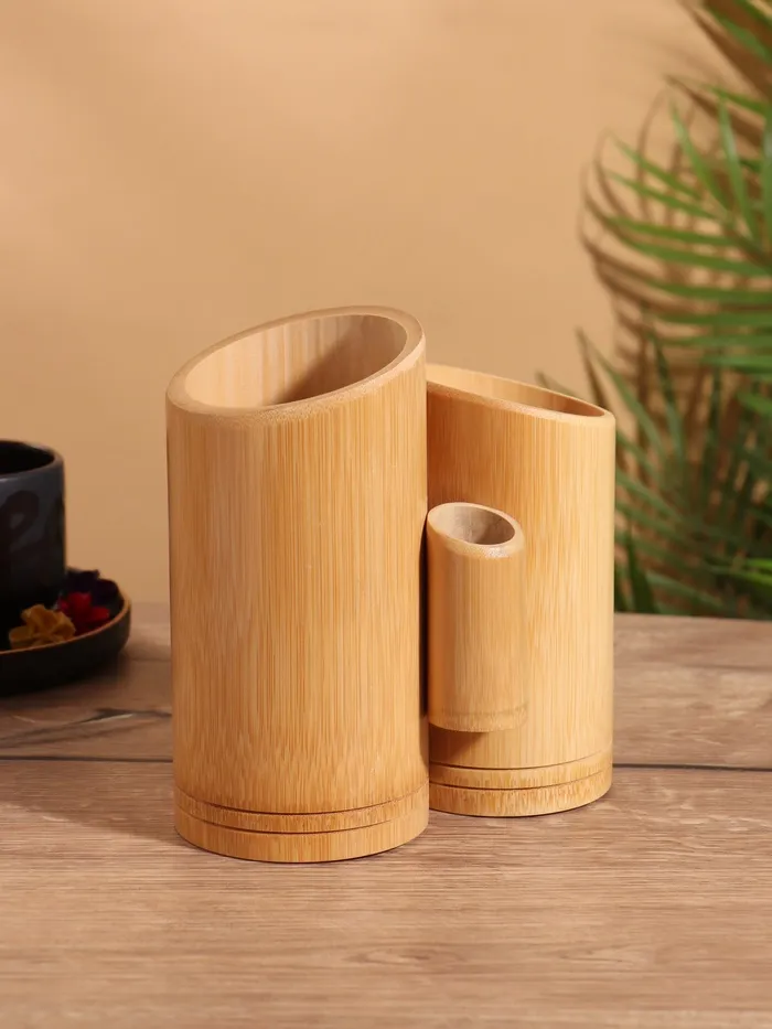 Подставка для столовых приборов, тройная 17 см, бамбук