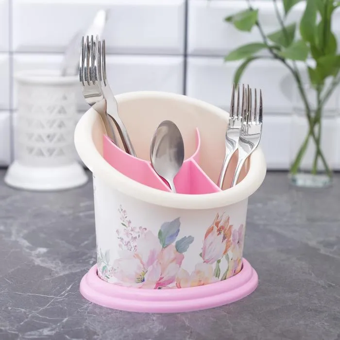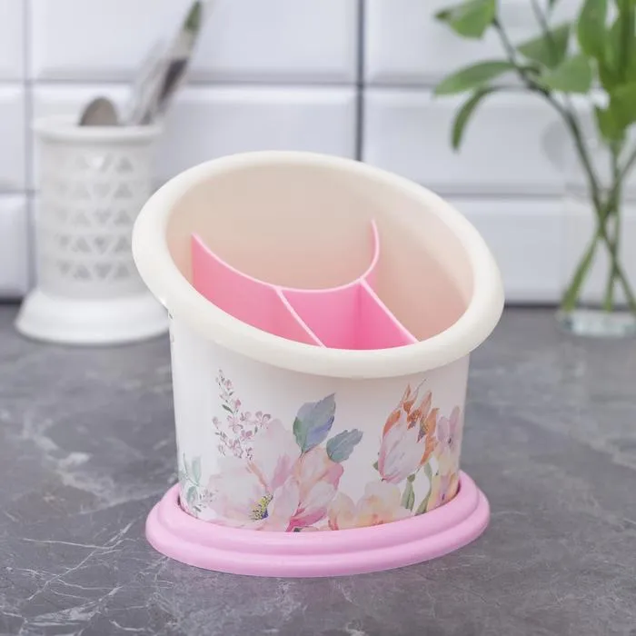 Подставка для столовых приборов «Цветочный блюз», 16×13×16 см, пластик — Характеристики