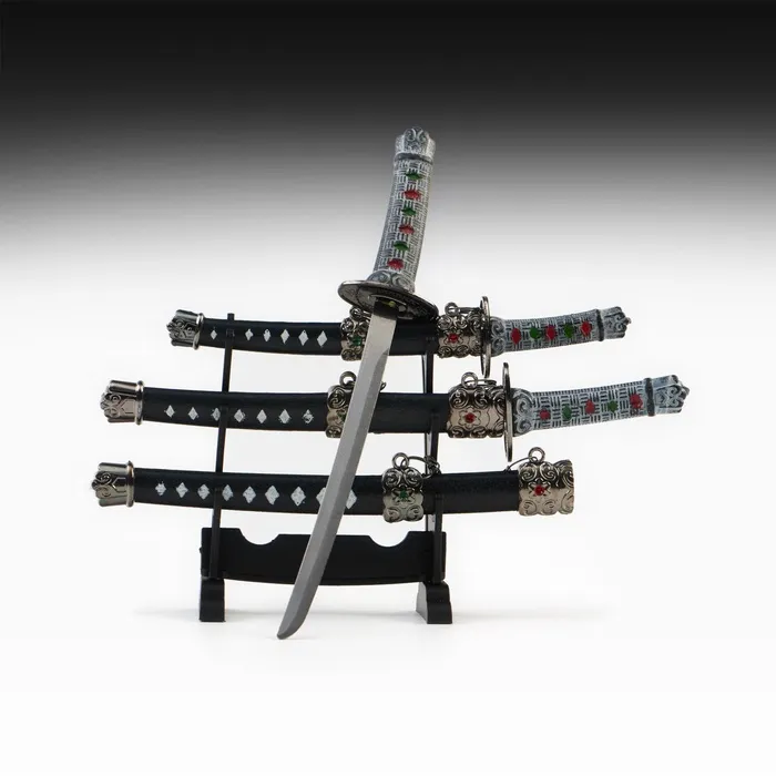 Погрузитесь в атмосферу восточной культуры с этой изысканной подставкой для сувенирного оружия. Она идеально подходит для демонстрации сабель, катан, мечей, кортиков и кинжалов, добавляя вашему интерьеру уникальный шарм и стиль.
