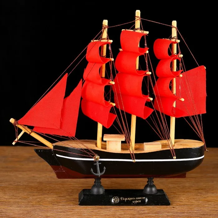 Сувенирная модель корабля «Восток», борта чёрные с белой полосой, паруса алые, 22×5×21 см, МИКС