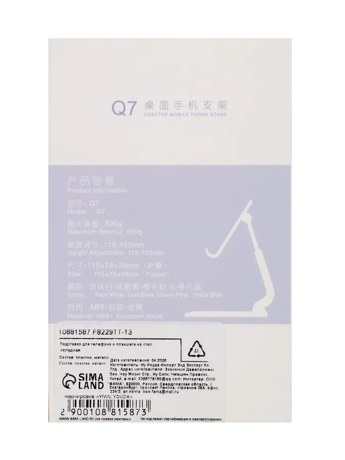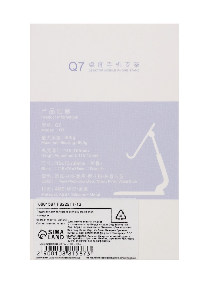 Подставка для телефона и планшета на стол, складная, чёрная — Характеристики
