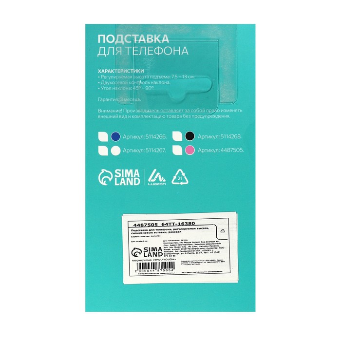 Подставка для телефона Luazon, регулируемая высота, силиконовые вставки, розовая — Характеристики