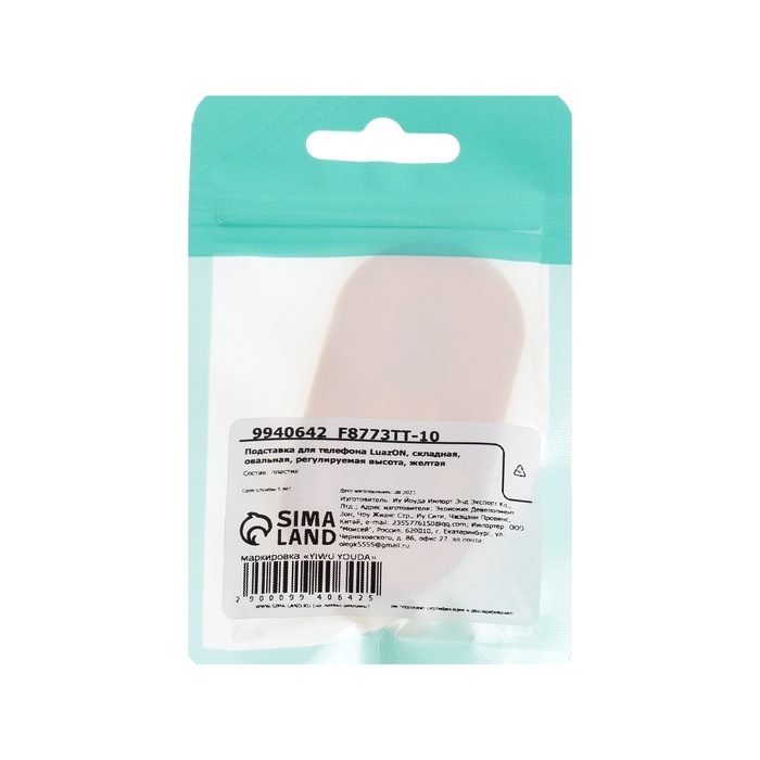 Подставка для телефона Luazon, складная, овальная, регулируемая высота, желтая — Характеристики
