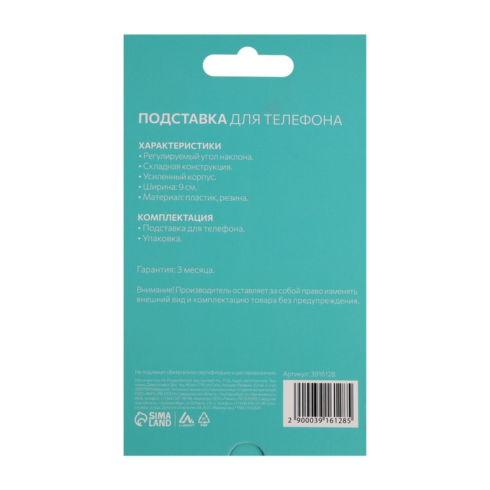 Подставка для телефона Luazon, складная, усиленная, регулируемая высота, бело/чёрная — Характеристики