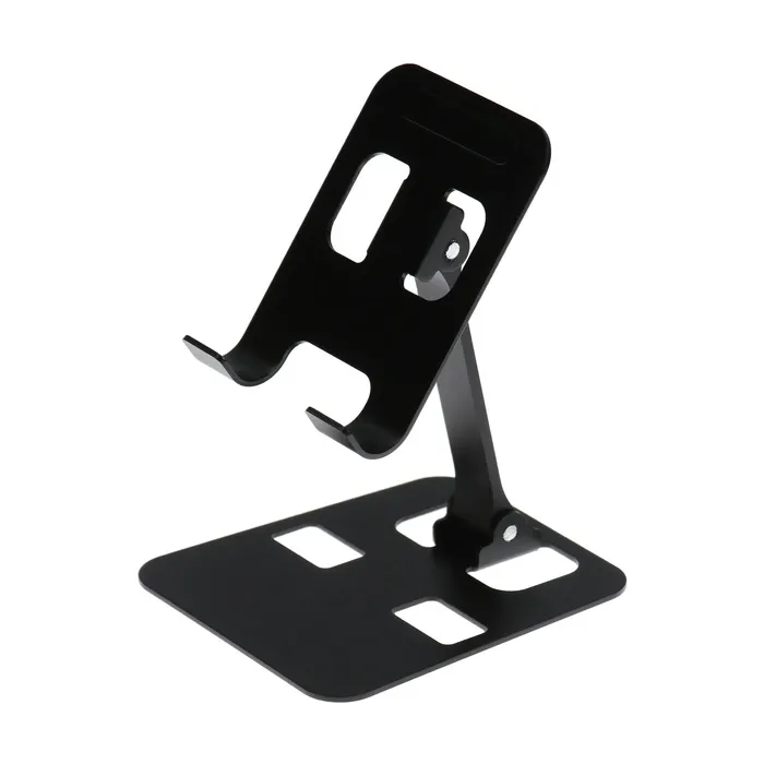 Подставка для телефона, регулируемая, складная, металл, резиновые вставки, чёрная