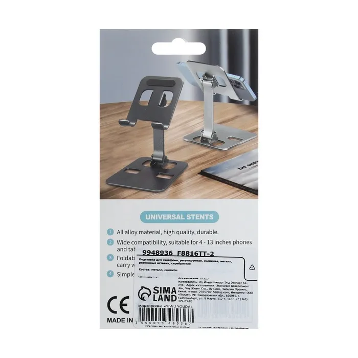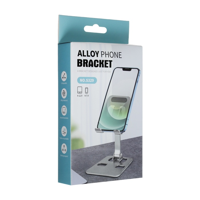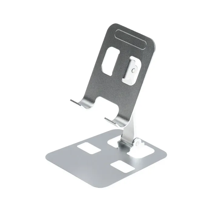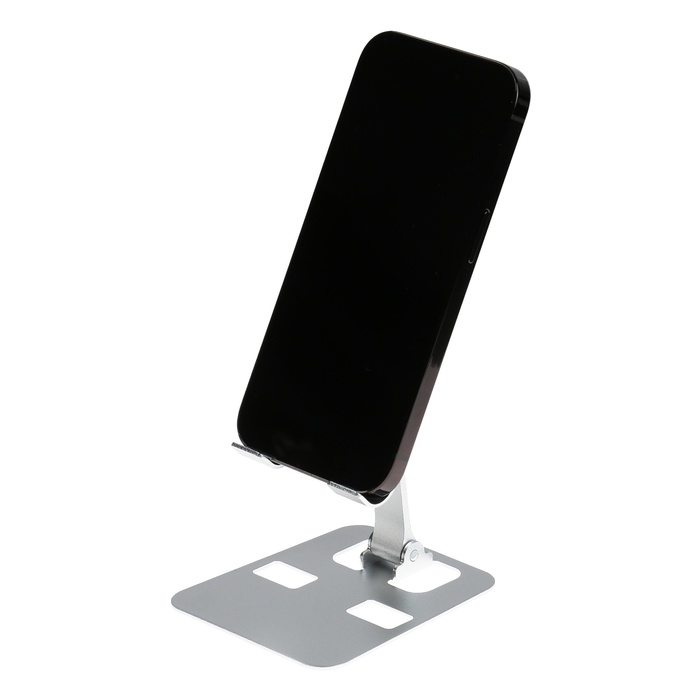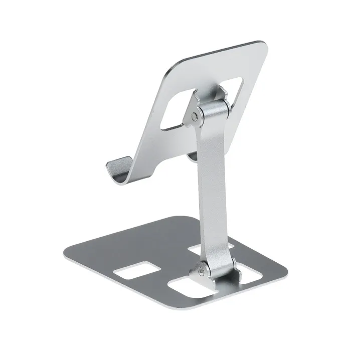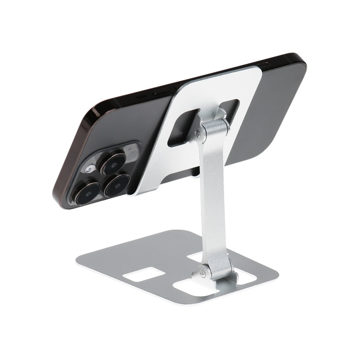 Подставка для телефона, регулируемая, складная, металл, резиновые вставки, серебристая