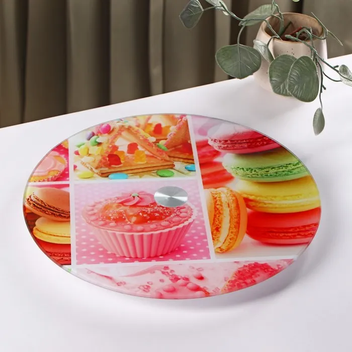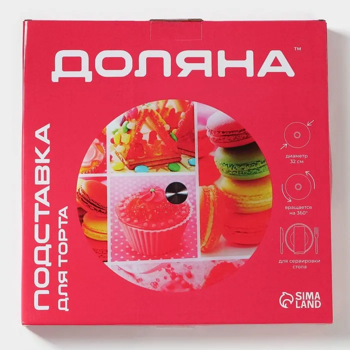 Подставка для торта Доляна «Сладости», d=32 см, вращающаяся, стекло, разноцветная — Характеристики
