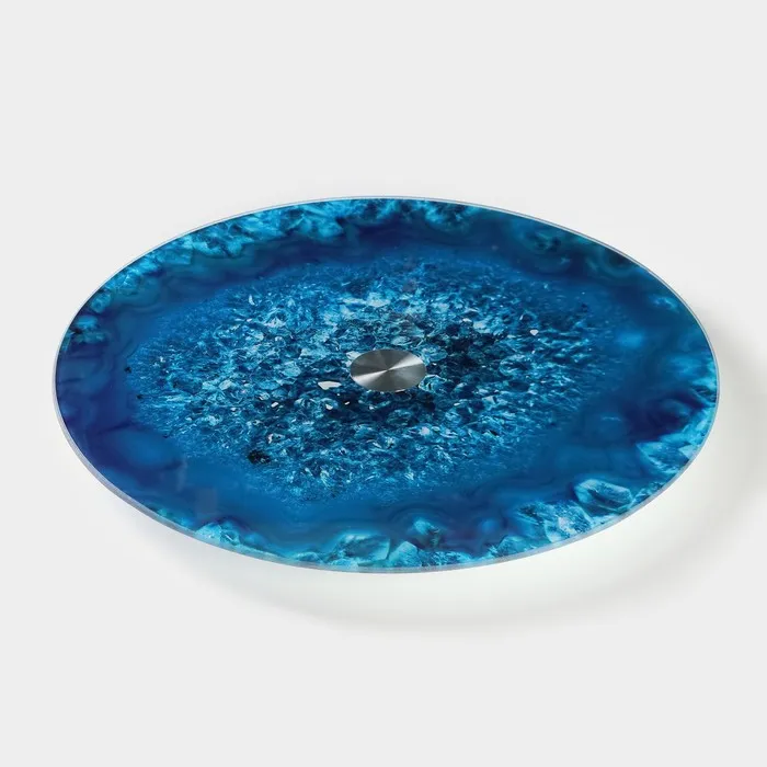 Подставка для торта вращающаяся Доляна «Голубой агат», d=32 см, стекло, синяя — Характеристики