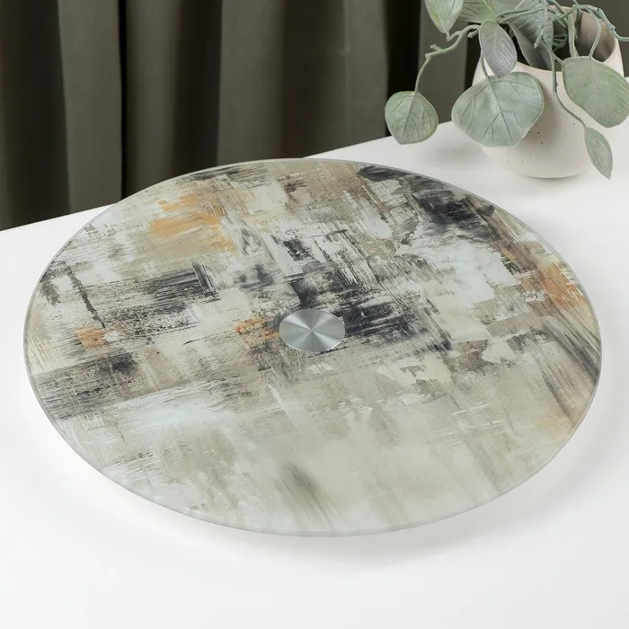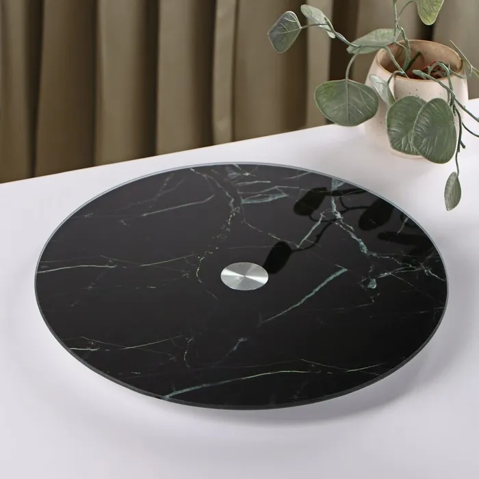 Подставка для торта вращающаяся Доляна «Марбл чёрный», d=32 см, стекло, чёрная — Характеристики