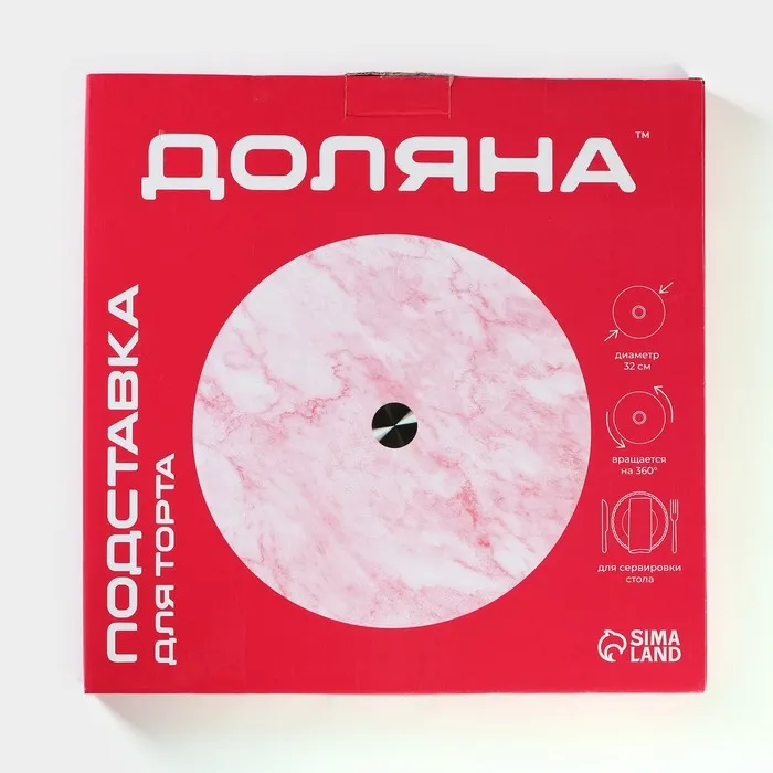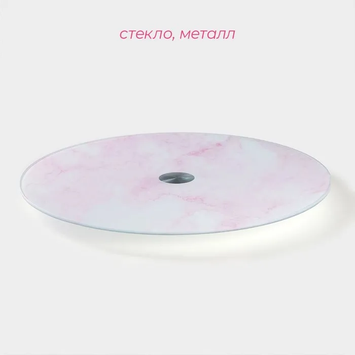 Подставка для торта вращающаяся Доляна «Марбл розовый», d=32 см, стекло, розовая — Характеристики
