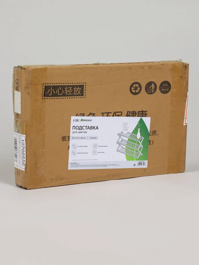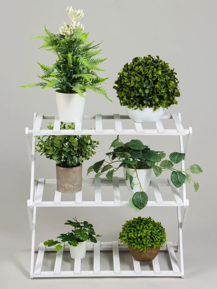 Подставка для цветов Greengo, 3 полки, 50×25×46 см, напольная, бамбук, белая — Характеристики