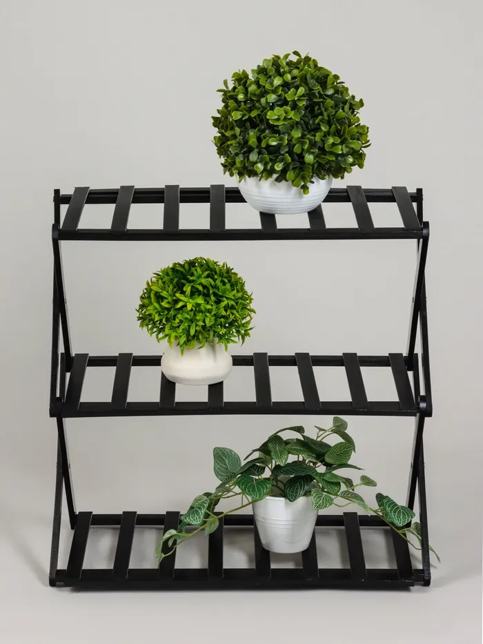 Создайте уютный зелёный уголок! Напольная подставка для растений – это стильное решение для организации пространства в доме или офисе. Три полки и чёрный бамбук создают современный акцент, который дополнит любой интерьер.