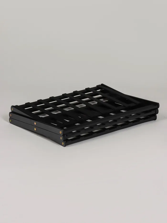 - Чёрный цвет как акцент. Строгий чёрный оттенок добавляет контраста и современности, превращая подставку в самостоятельный элемент декора.