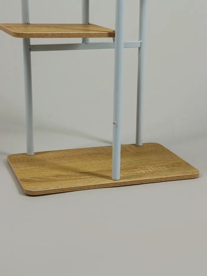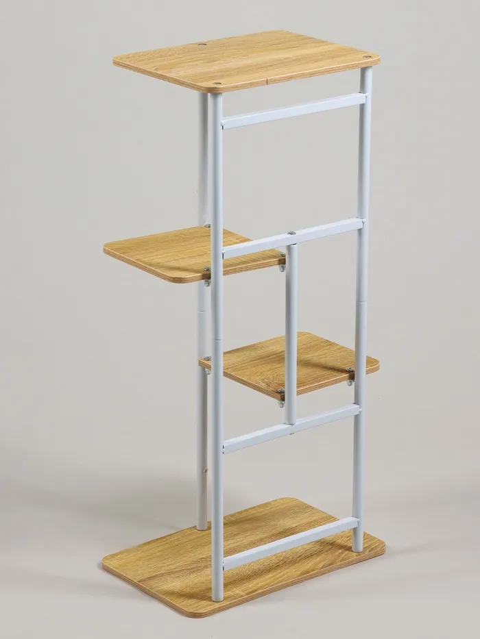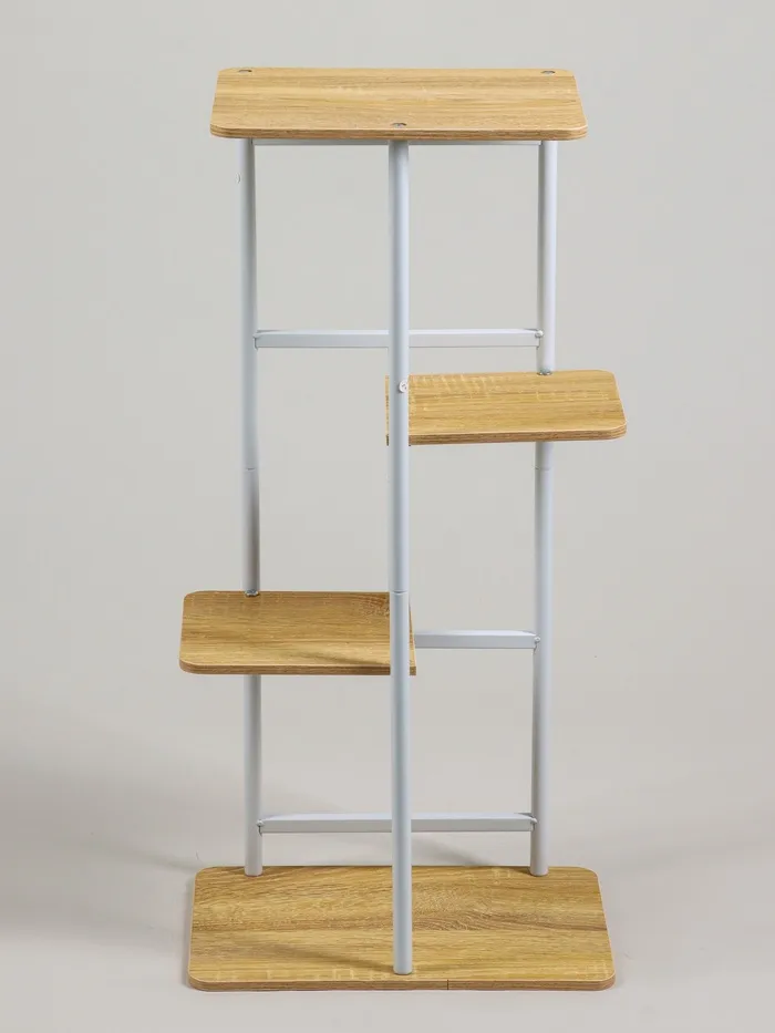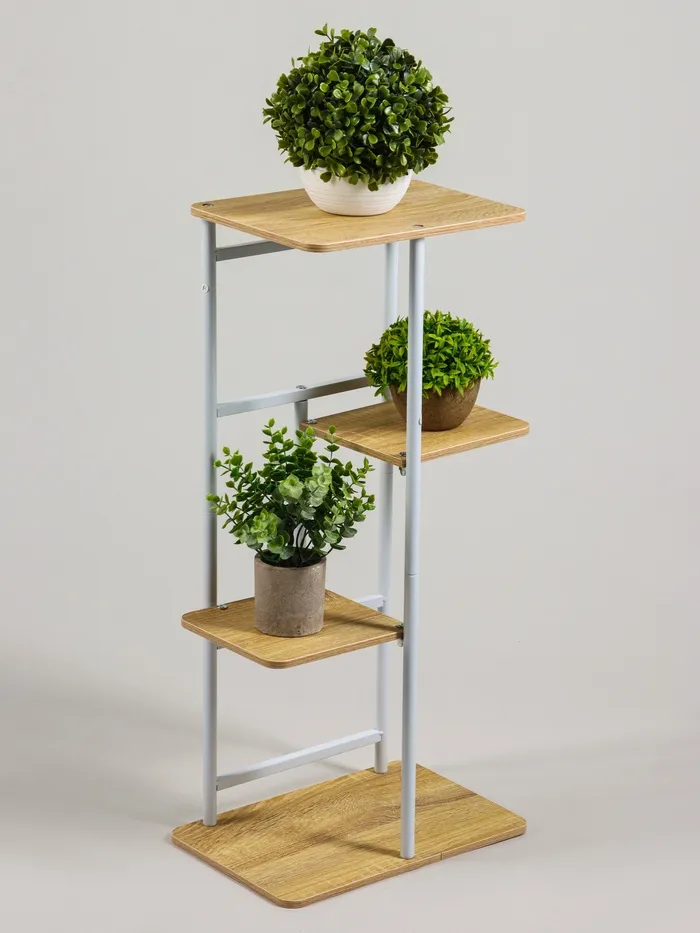 Эта подставка сочетает в себе функциональность и стиль. Её металлический каркас гарантирует долговечность, а полки из МДФ добавляют интерьеру уют. Четыре уровня полок позволяют создать зелёный уголок или организовать пространство для хранения. Идеальный выбор для тех, кто ценит практичность и стремится к гармонии в интерьере.