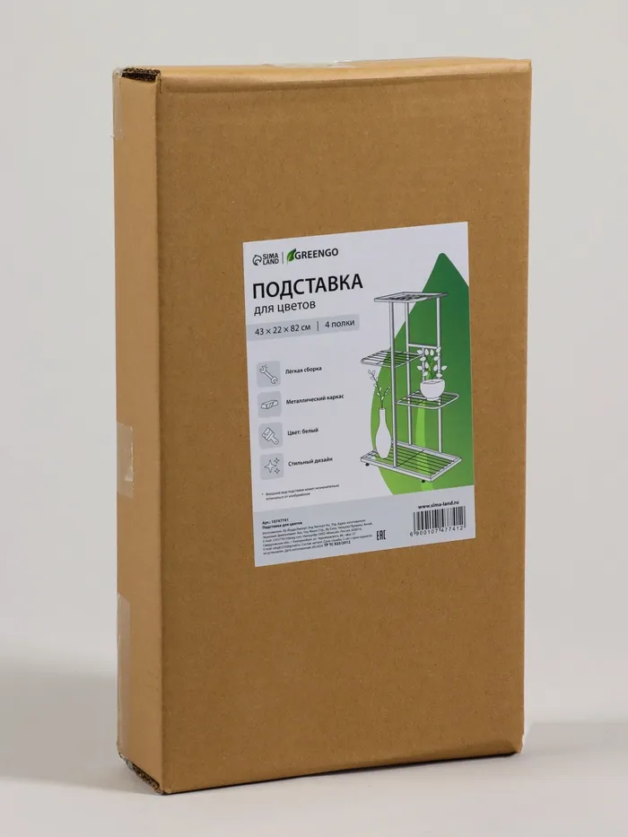 Подставка для цветов Greengo, 4 полки, 43×22×82 см, напольная, металл, белая — Характеристики