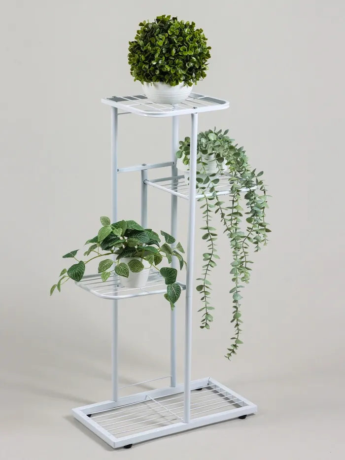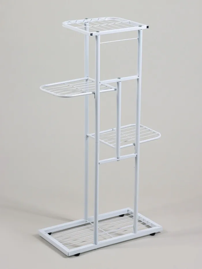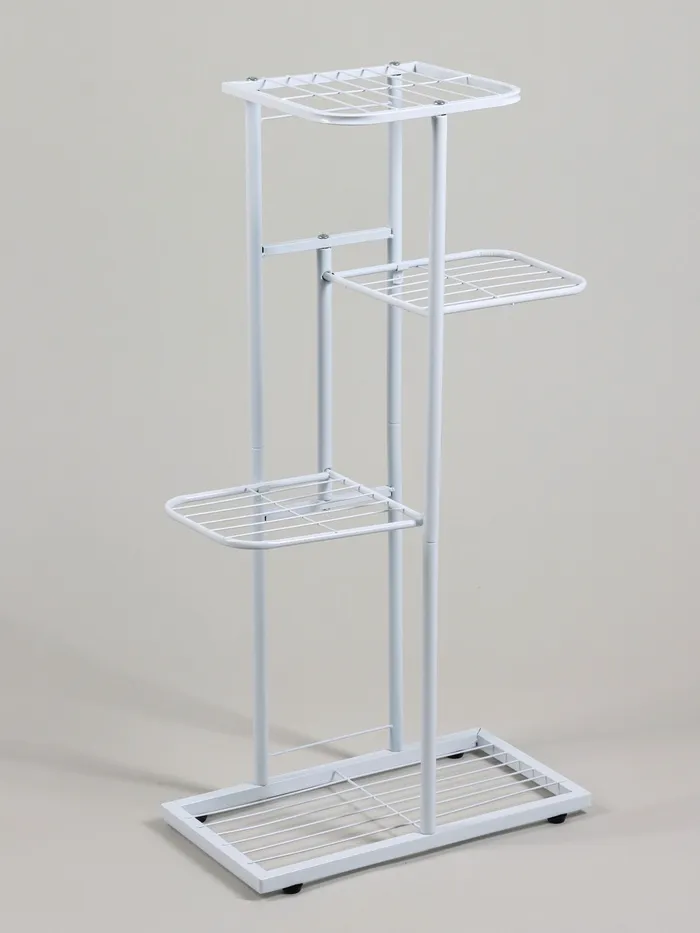 Подставка для цветов с 4 полками станет стильным решением для организации пространства на балконе, в прихожей или гостиной. Металлическая конструкция высотой 82 см обеспечивает надёжность и долговечность использования. Компактные размеры позволяют разместить горшочные растения без потери свободного места.