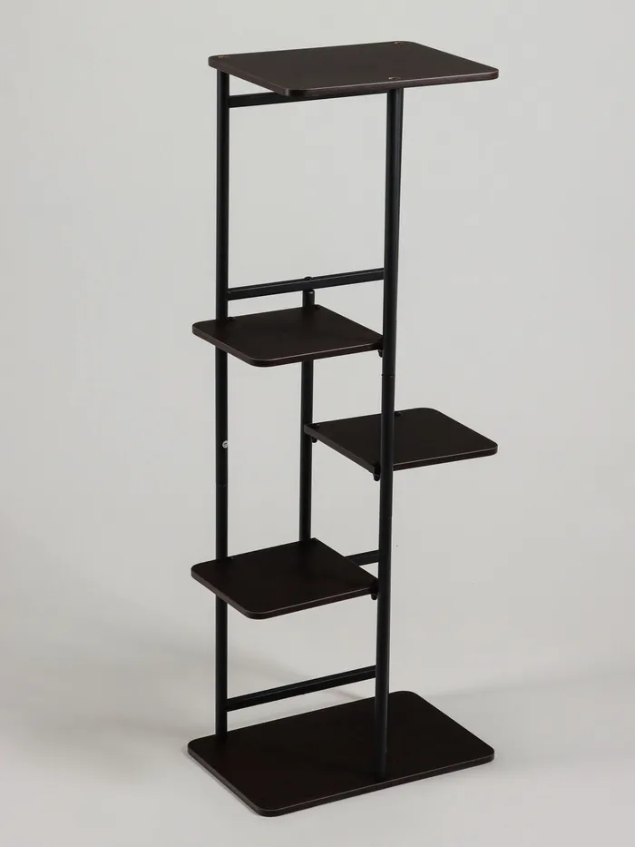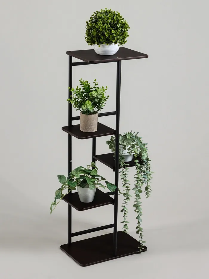 Превратите пространство в стильный вертикальный сад! Напольная стойка для растений станет вашим помощником в создании уютного интерьера. Чёрный цвет и лаконичный дизайн добавят помещению современности, а пять полок помогут организовать пространство без лишнего захламления.