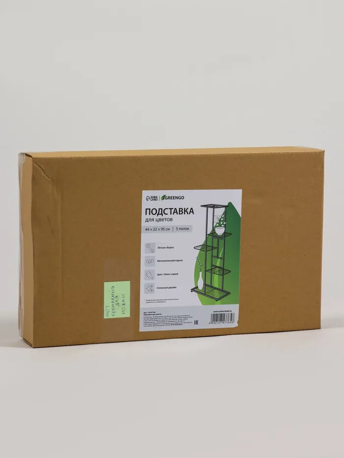 Подставка для цветов Greengo, 5 полок, 44×22×95 см, напольная, металл, тёмно-серая — Характеристики