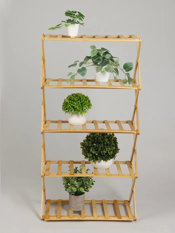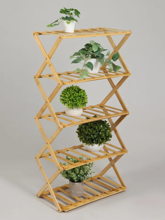Превратите пространство вокруг себя в зелёный оазис с напольной подставкой из бамбука. Эта функциональная конструкция станет идеальным дополнением для вашего интерьера, помогая сгруппировать растения на пяти уровнях.