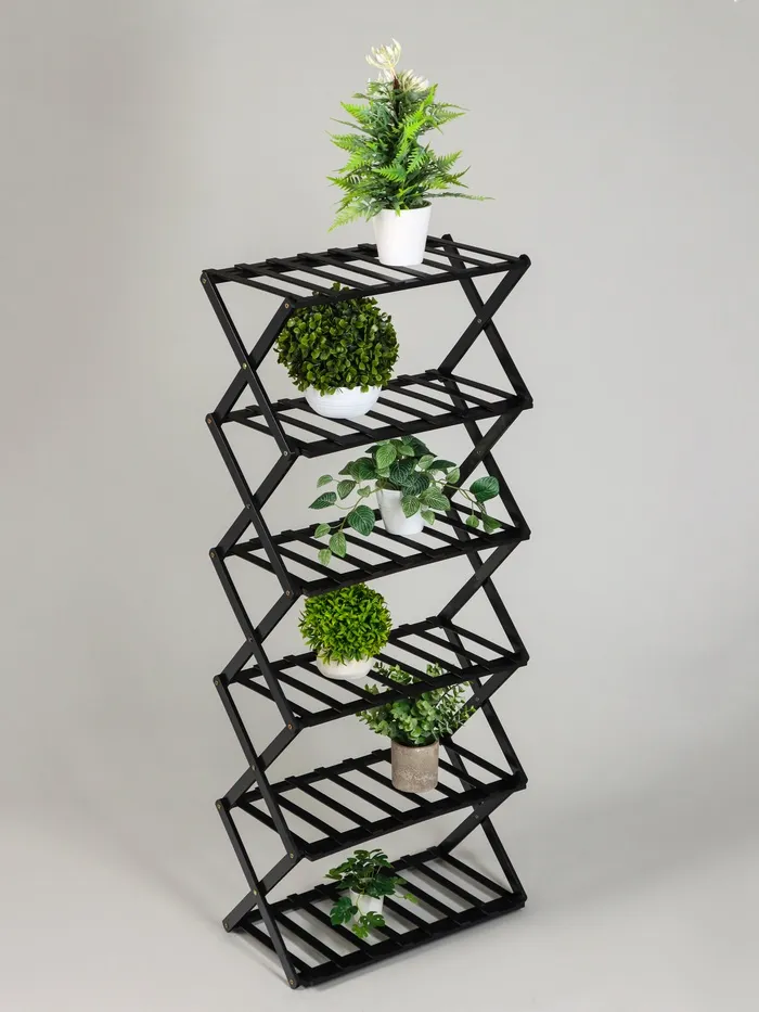 Подставка для цветов Greengo, 6 полок, 50×25×110 см, напольная, бамбук, чёрная — Характеристики