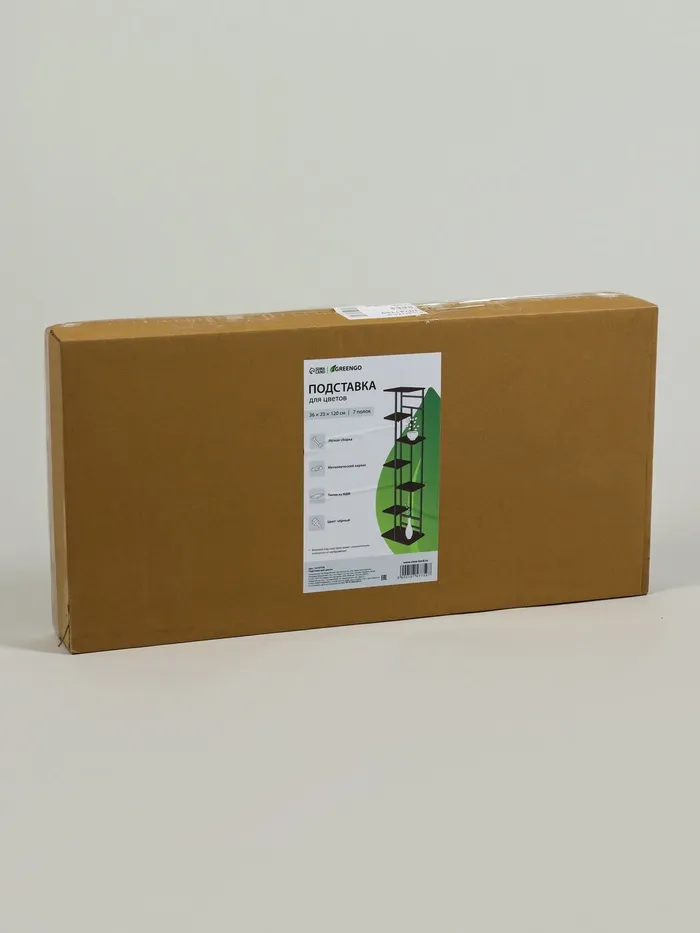 Подставка для цветов Greengo, 7 полок, 36×23×120 см, напольная, каркас металл, полки МДФ, чёрная — Характеристики