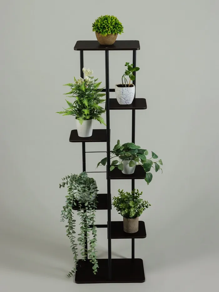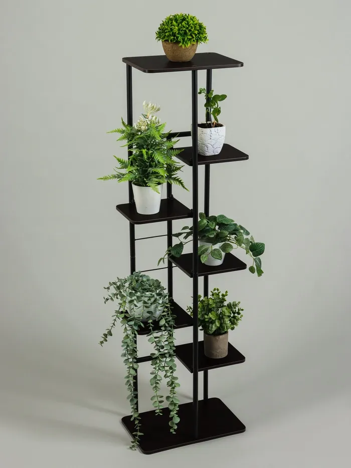 Создайте свой вертикальный сад! Напольная стойка для растений поможет превратить любое пространство в зелёный оазис. Семь полок и чёрный лаконичный дизайн добавят вашему интерьеру современности и функциональности.