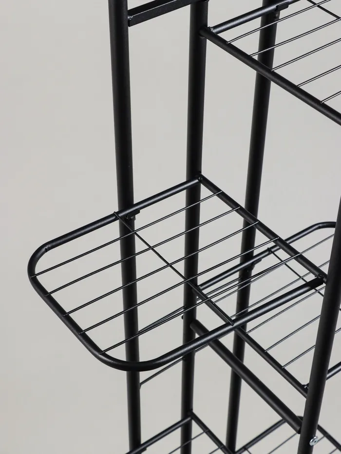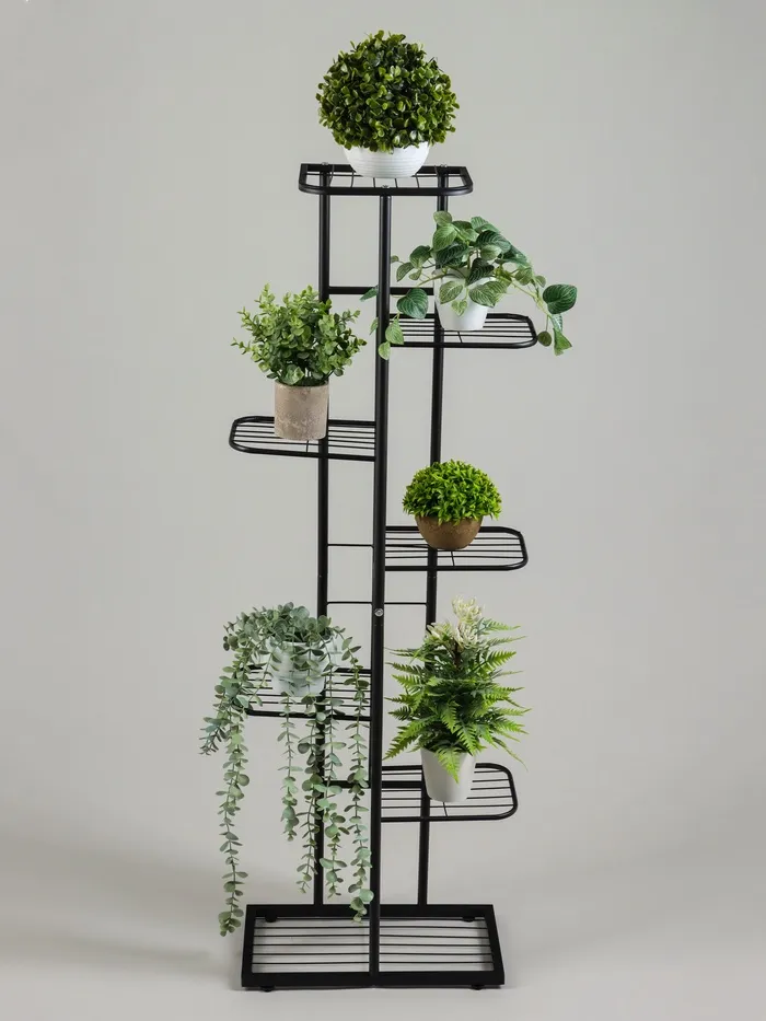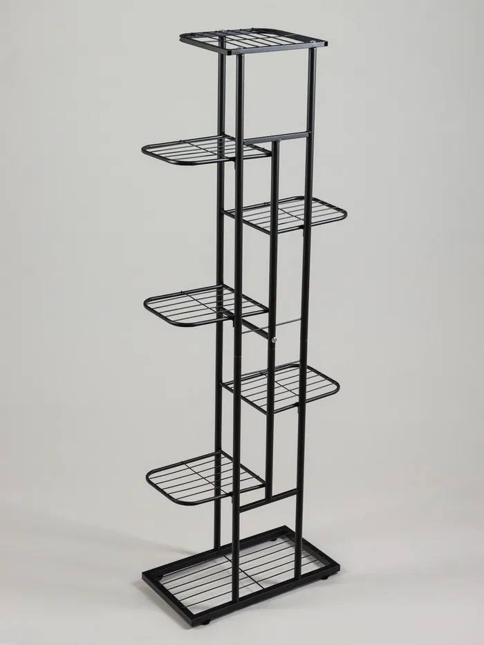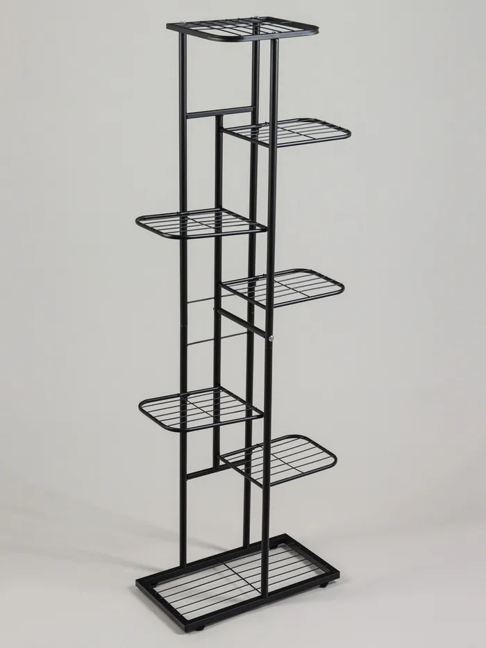 Напольная стойка для цветов с семью полками — это практичное и эстетичное решение для организации пространства. Её минималистичный дизайн делают её универсальным элементом декора, который подойдёт для дома, офиса или кафе. Прочная металлическая конструкция обеспечивает устойчивость, а семь уровней полок предоставляют простанство для размещения растений, книг или декоративных аксессуаров.