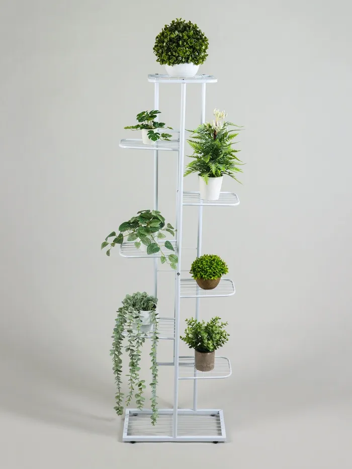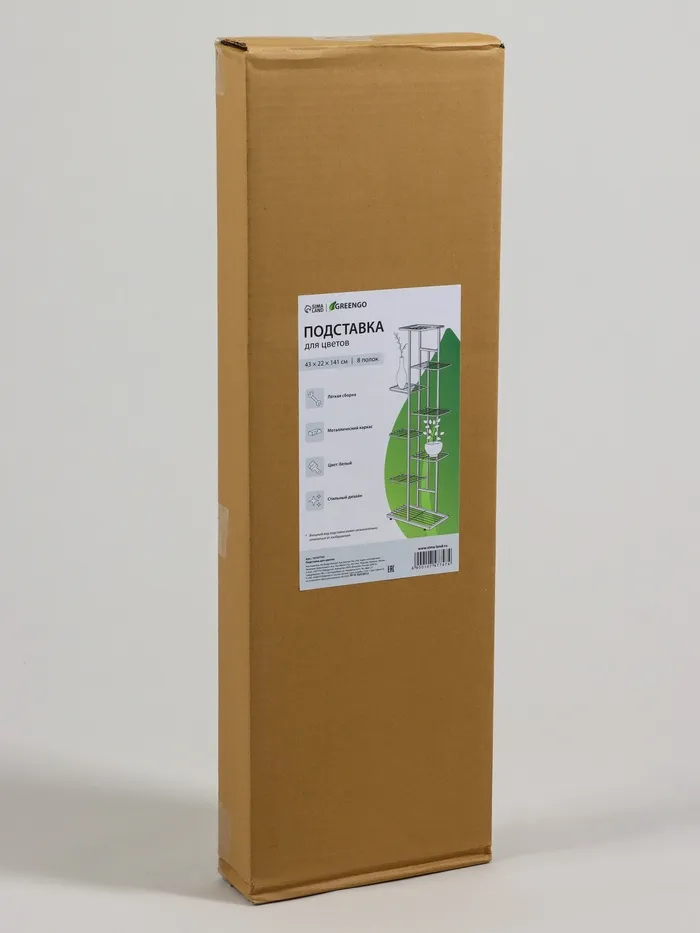 Подставка для цветов Greengo, 8 полок, 43×22×141 см, напольная, металл, белая — Характеристики