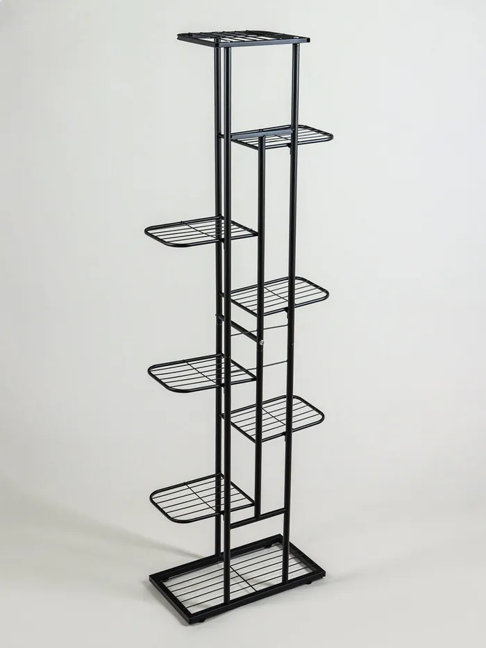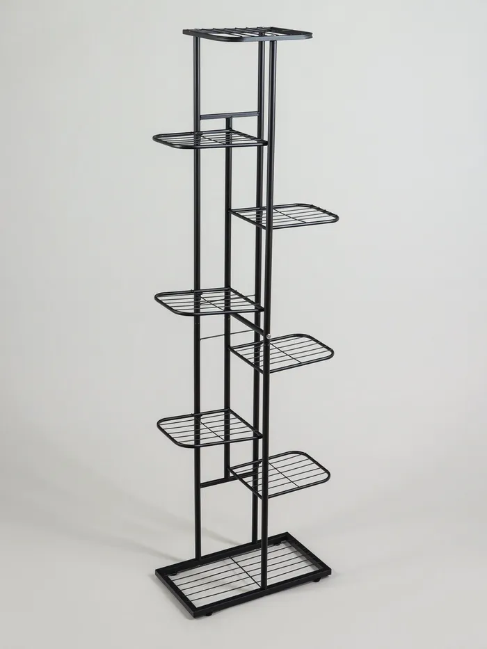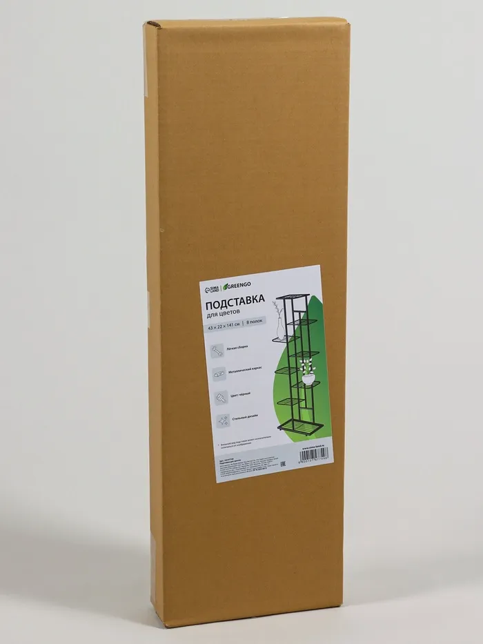 Подставка для цветов Greengo, 8 полок, 43×22×141 см, напольная, металл, чёрная — Характеристики