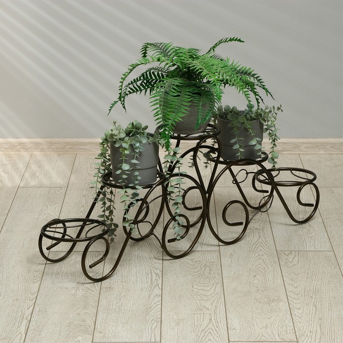 Подставка для цветов, напольная, на 5 горшков, d=14 см, бронзовая, «Кружево»