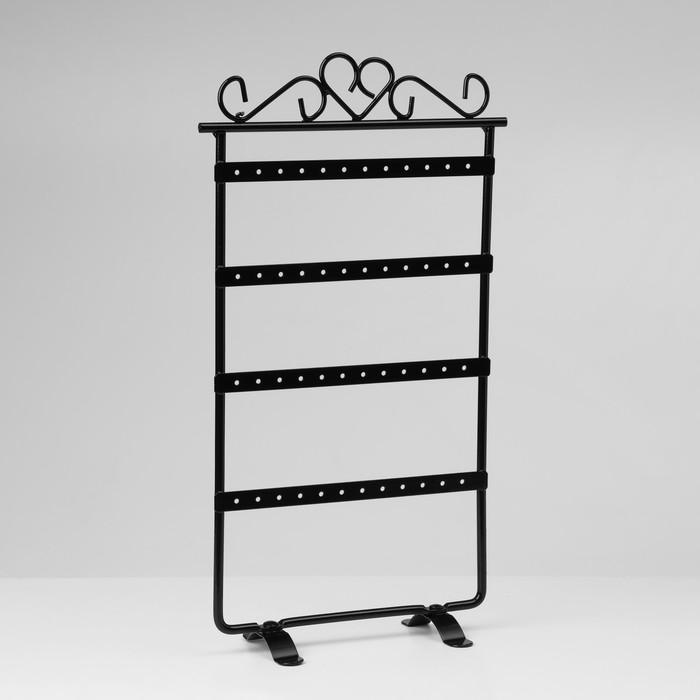 Подставка для украшений , 4 ряда, 16×7×29 см, чёрная представляет собой устойчивую и прочную конструкцию с интересным дизайном, способным оживить ваш интерьер. Держатель для украшений с лёгкостью поможет освободить место на дамском столике и позволит вам сэкономить массу времени на создание гармоничного образа. Эта модель придётся по душе любительницам полезных декоративных приспособлений.