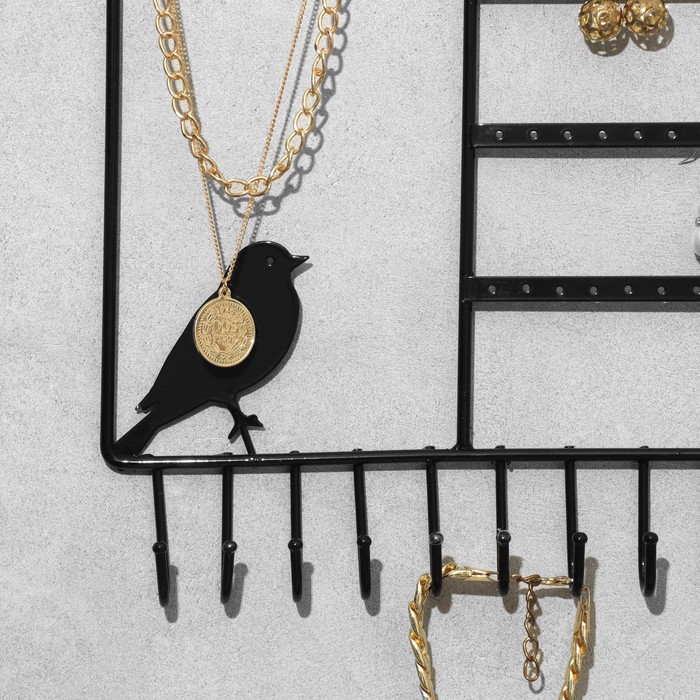 Подставка для украшений «Клетка с птичкой» 20 пар серёг и 20 крючков, 25.5×3.5×43 см, цвет чёрный