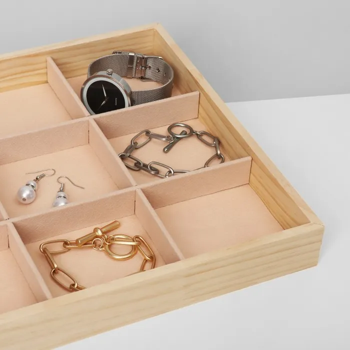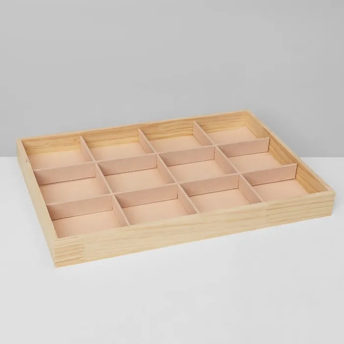 Подставка для украшений QF 12 ячеек, дерево, 35×24×3, цвет бежевый