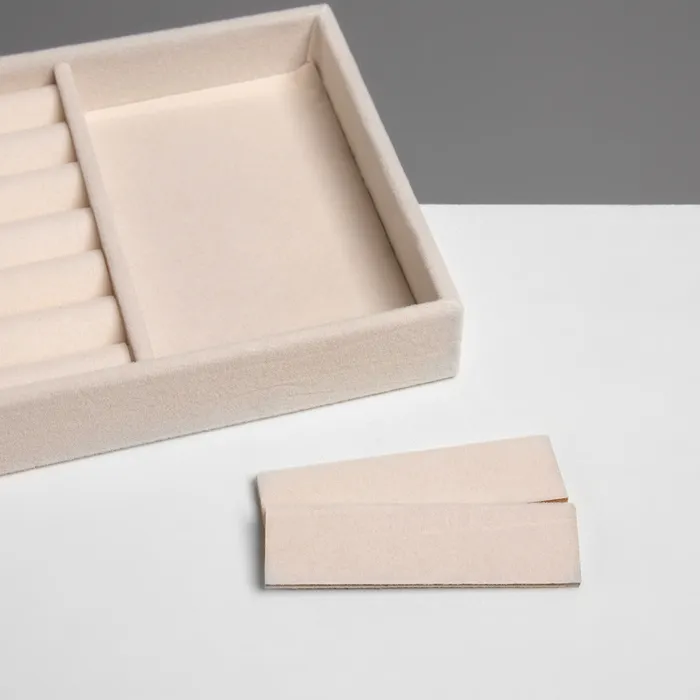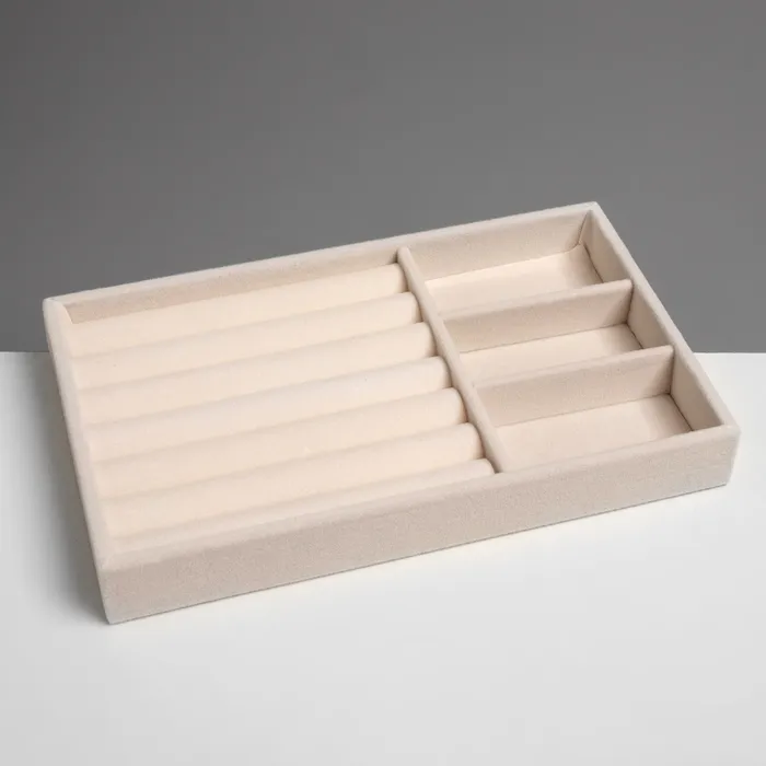 Подставка для украшений QF 3 ячейки и 7 полос для колец, флок, 21×12,3×2,5 см, цвет бежевый