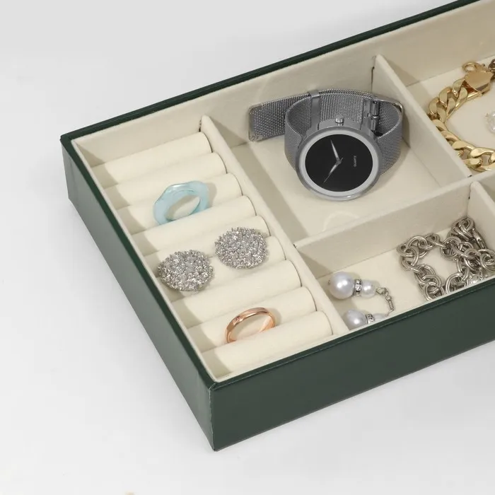 Подставка для украшений QF 4 ячеек, 9 полос, 24,5×15,5×4,5 см, цвет бежево-зелёный — Характеристики