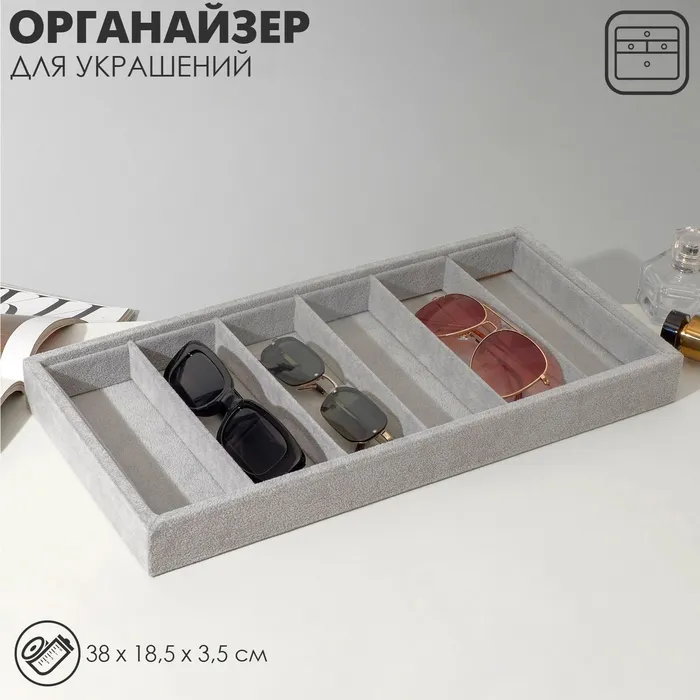 Подставка для украшений QF 6 ячеек, 38×18,5×3,5, цвет серый — Характеристики