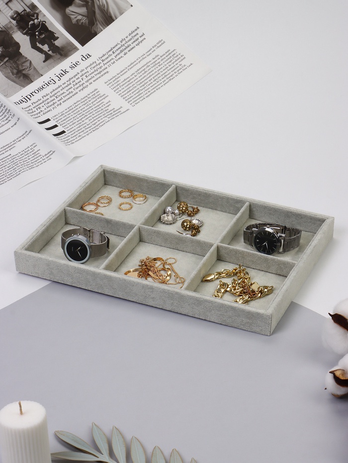 Подставка для украшений QF 6 ячеек, флок, 35×24×3, цвет серый