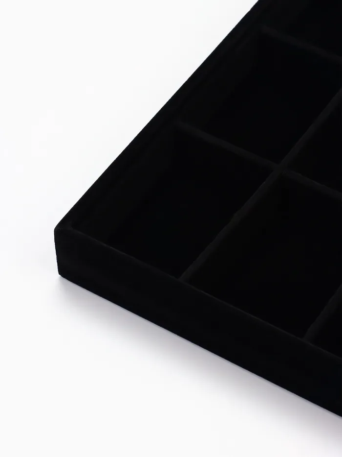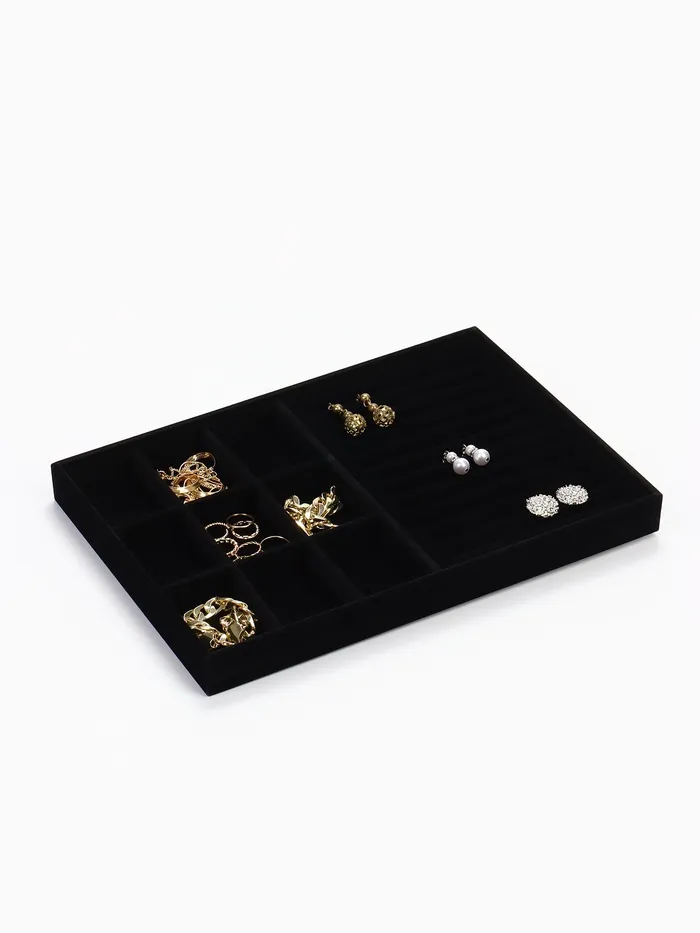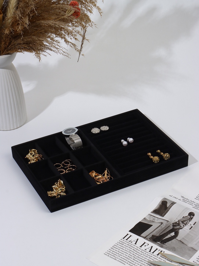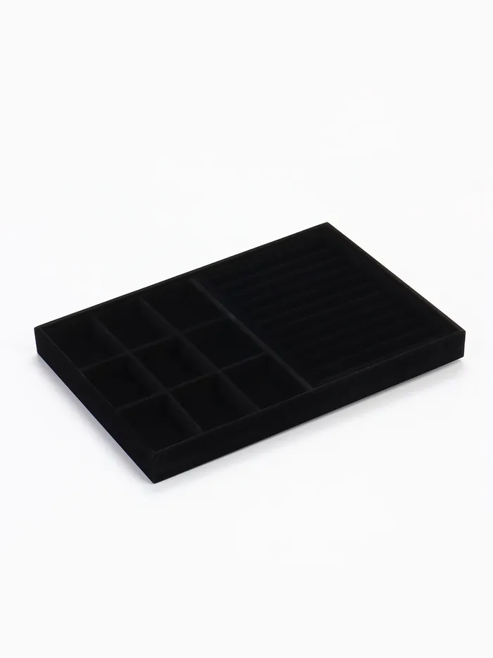 Подставка для украшений QF 9 ячеек и 11 полос для колец, флок, 35×24×3 см, цвет чёрный — Характеристики