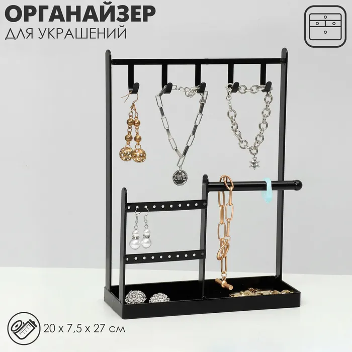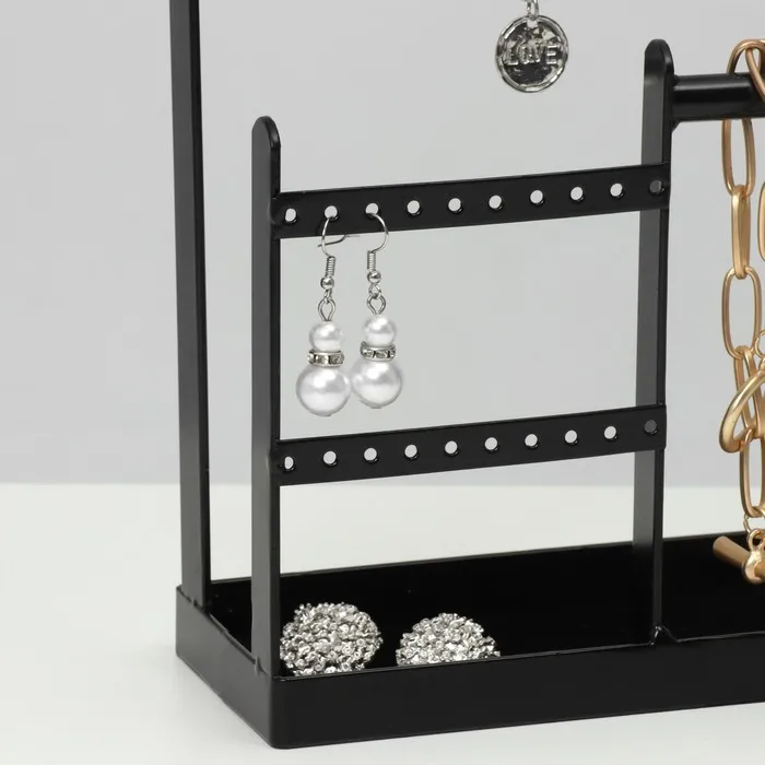 Подставка для украшений QF «Универсальная» 2-х уровневая, 20×7,5×27 см, цвет чёрный — Характеристики