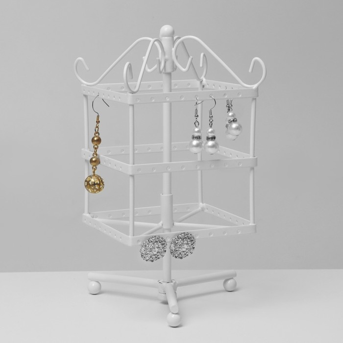 Подставка для украшений QF «Вертушка», 3 яруса, 48 пар, металл, 11×11×28 см, цвет белый