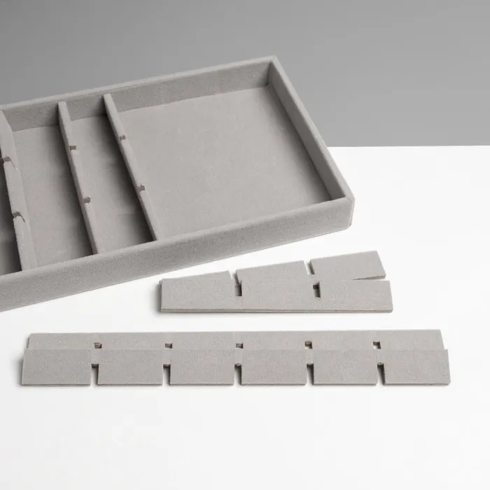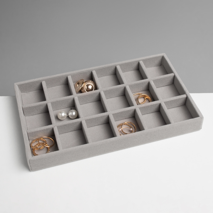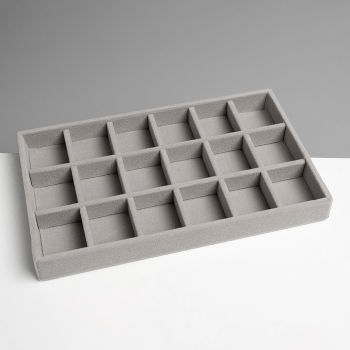 Подставка для украшений QF18 ячеек, флок, 21×12,3×2,5 см, цвет серый