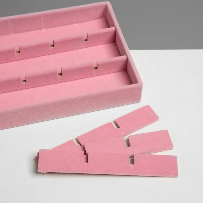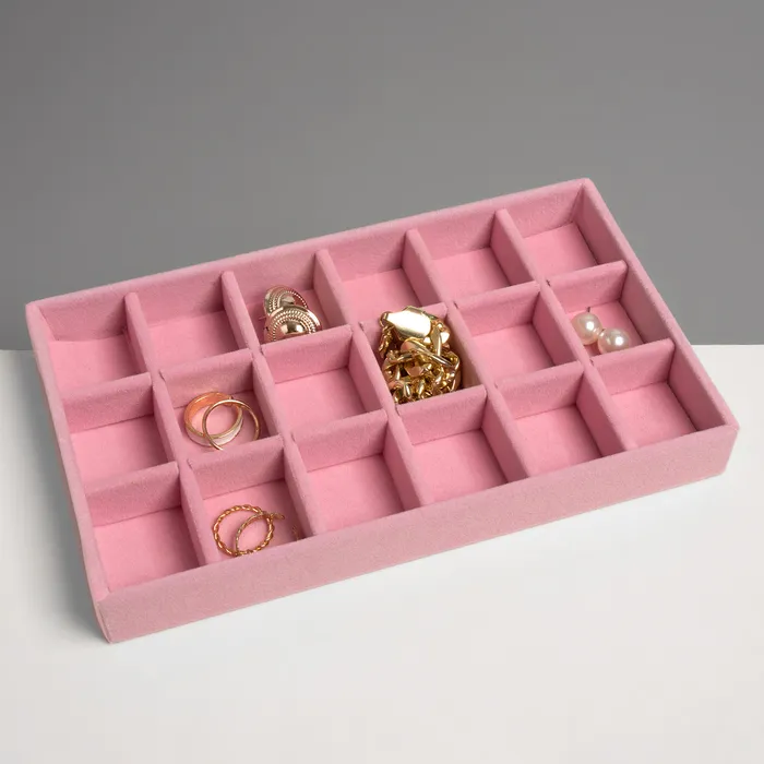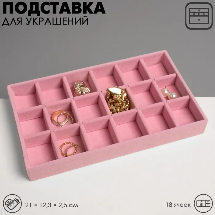 Подставка для украшения 18 ячеек, флок, 21×12,3×2,5 см, цвет розовый — Характеристики