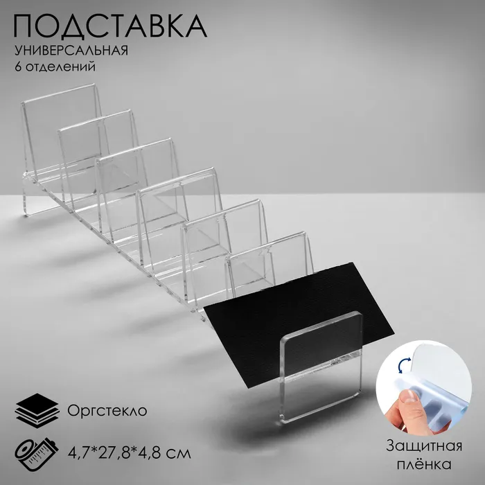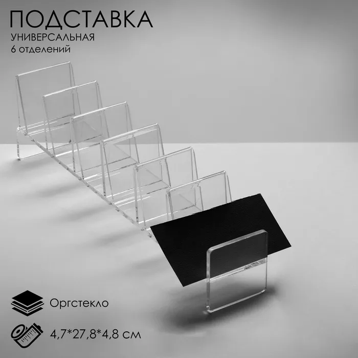 Подставка для выкладки товара, универсальная шесть отделений, оргстекло 2 мм, 4,7×27,8×4,8 см — Характеристики