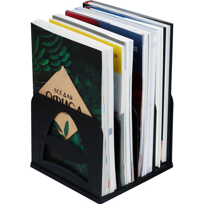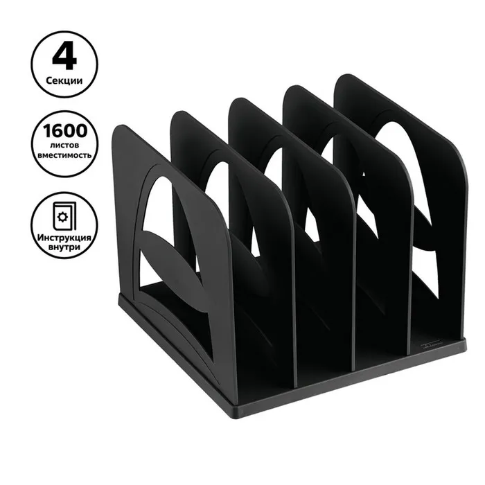 Подставка для журналов и бумаг (сортер) «Стамм», сборная, 4 отделения, чёрная — Характеристики
