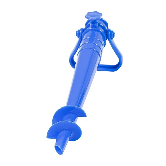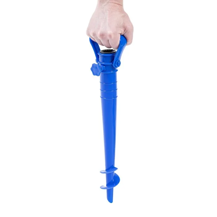 Подставка для зонта Green Glade выполнена из пластика и имеет форму бура, благодаря чему легко ввинчивается в почву или песок, надежно закрепляя в нем зонт.
