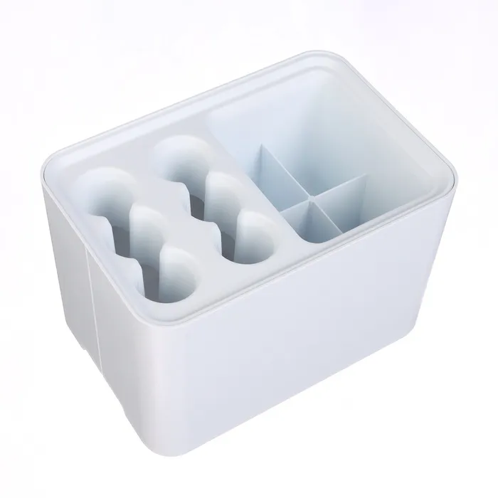 Подставка для зонтов, пластик, 6 круглых, 4 квадратных отделений, 18×18×26,5 см, белая — Характеристики