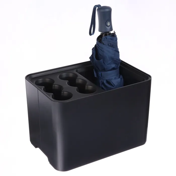 Изготовленная из прочного пластика, эта подставка гарантирует надежное хранение ваших зонтов, защищая их от повреждений и случайного падения. Компактные размеры делают ее идеальной для использования как в прихожей, так и в офисе, а стильный дизайн прекрасно вписывается в любое пространство.