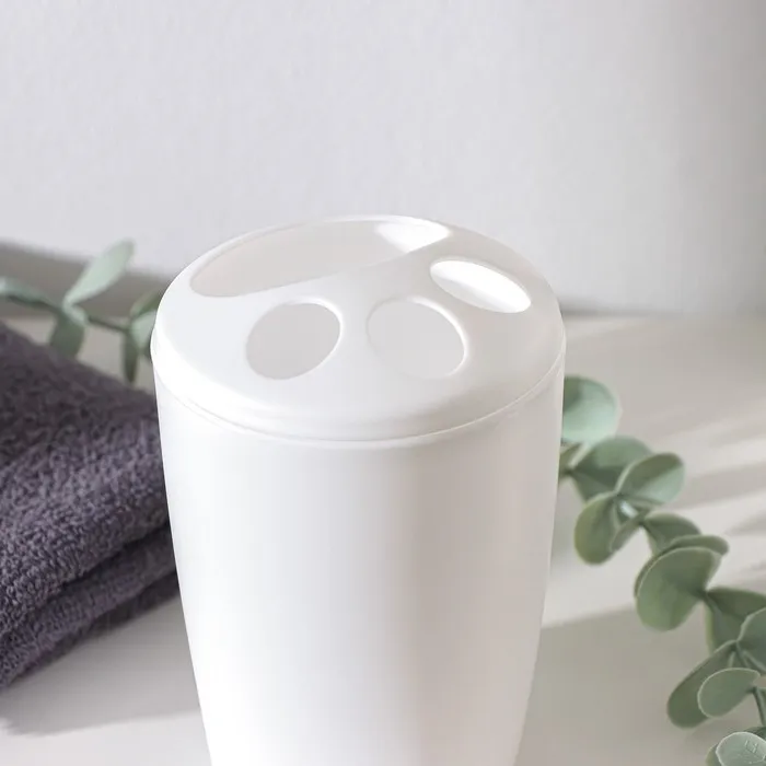 Подставка сделана в соответствии с российскими стандартами качества, так что можно не беспокоиться о ее безопасности. Она не впитывает запахи, а устойчивое широкое донышко исключит случайные падения. Съемная верхняя крышка с отверстиями поможет щеткам не соприкасаться щетинками.